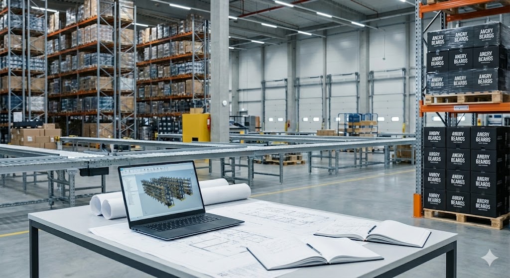 Angry Beards had outgrown their original 1941 facility, where 450 pallets were scattered across four floors. The fragmented layout limited efficiency and could not support the pace of sales growth.